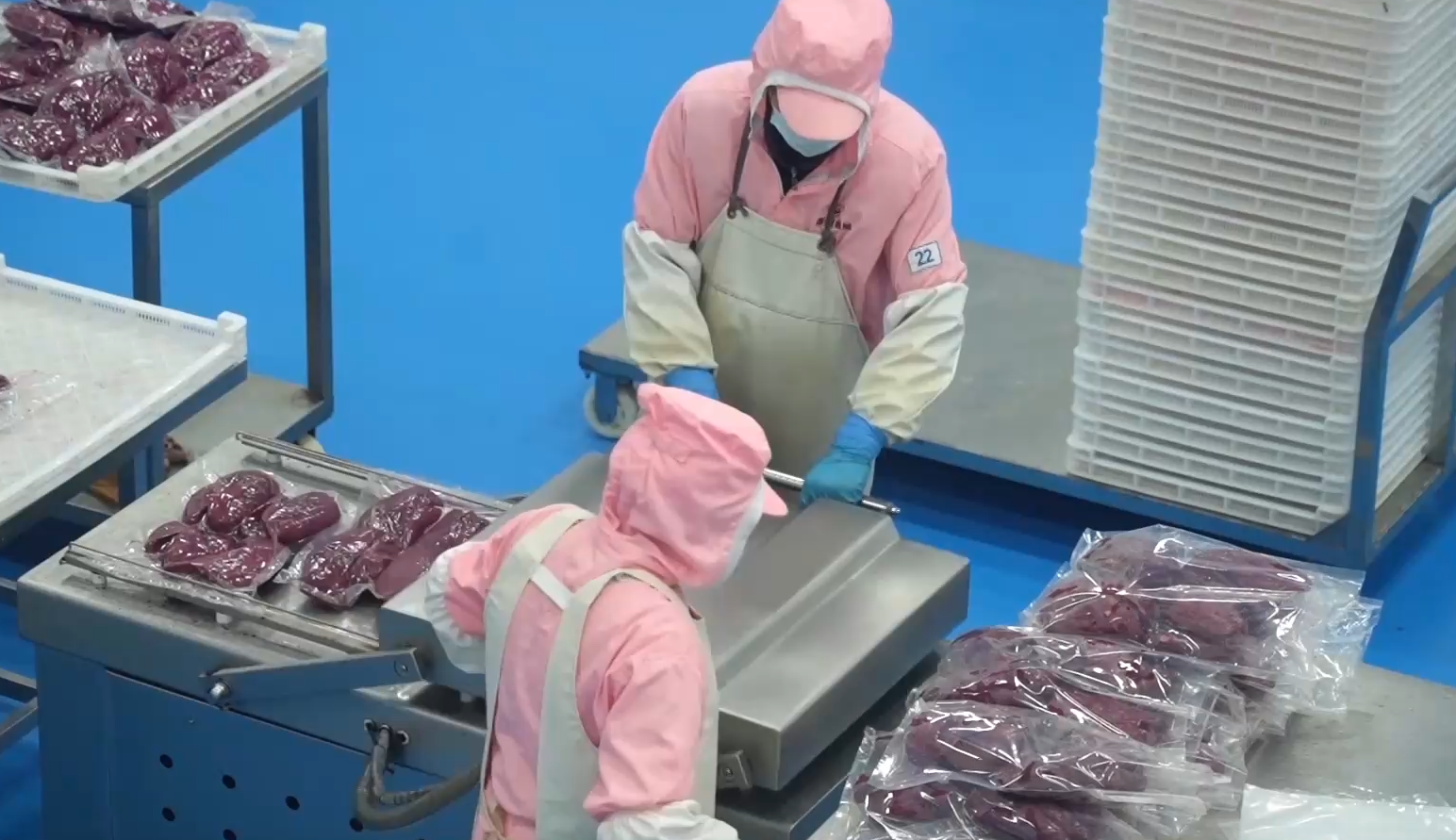 老苍生也见到了效益和成效。采用的是三模种植手艺。出口产物销往印尼、欧洲等国度和地域。山东春冠食物无限公司的工人们正正在赶制一批价值300多万元、即将发往的红酒蓝莓鹅肝订单。新一年订单环境不变。